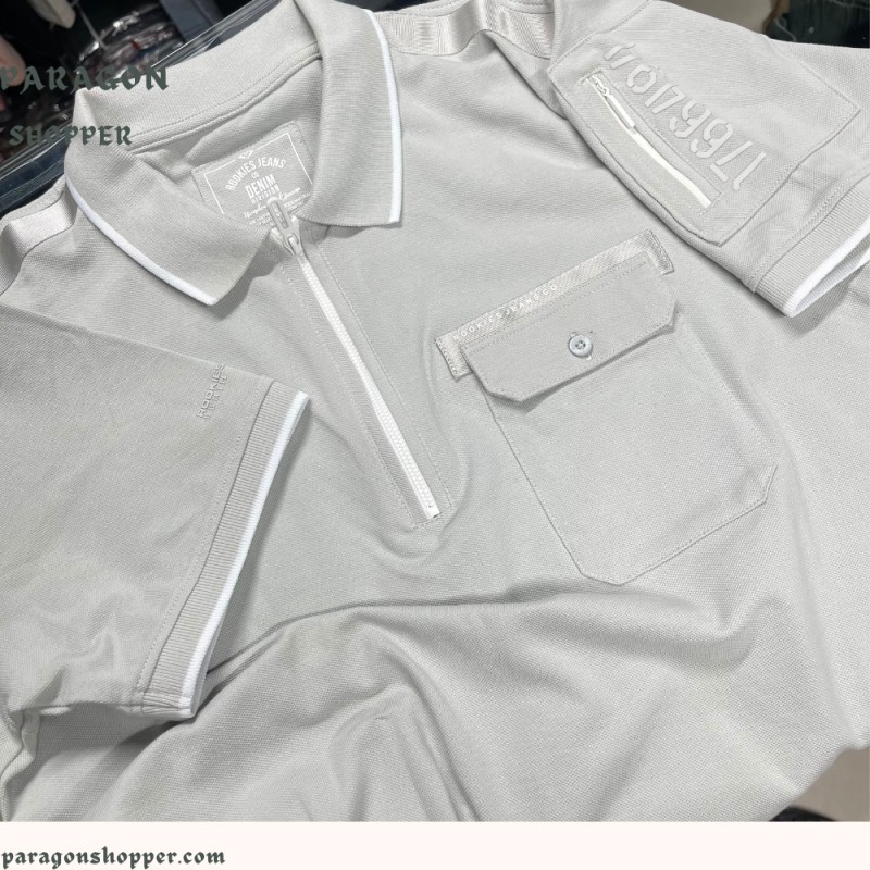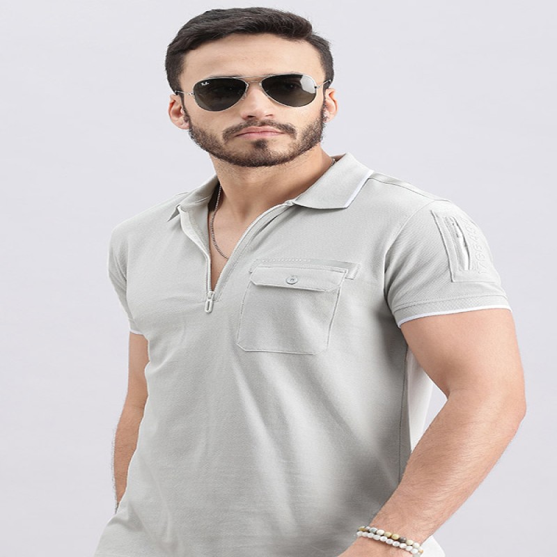 LT GREY HALF SLEEVE PIOUE POLO TEE (POLO NECK H/SLV SLIM)PK 19
